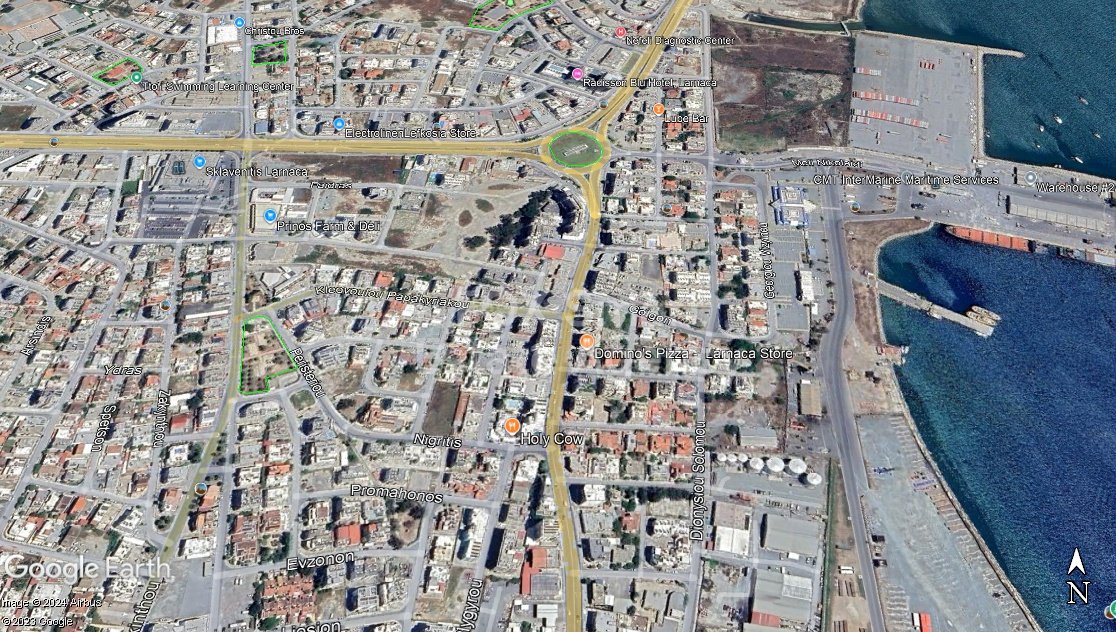 Plot for sale in Larnaca, in a residential area, close to amenities and walking distance to the center. Zone Ka4, building density 120%, coverage 50%, three floors allowance. Façade 10m. Title deed available. No VAT.