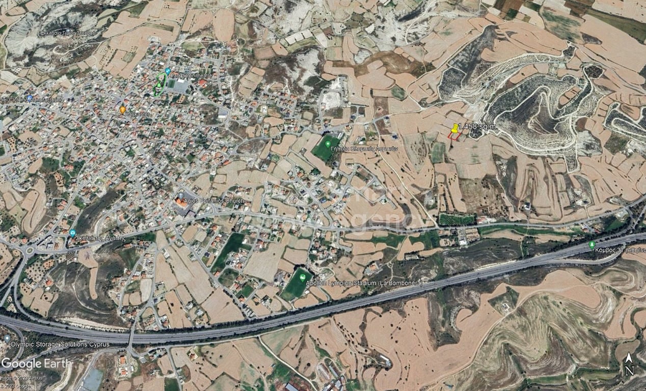 Residential Land of 1.459m2 in Lympia, Nicosia, For Sale. The Land is in zone Ka8 with building density 60%, coverage 35%, 2 floors allowance with max. height 10m. Title Deeds available.