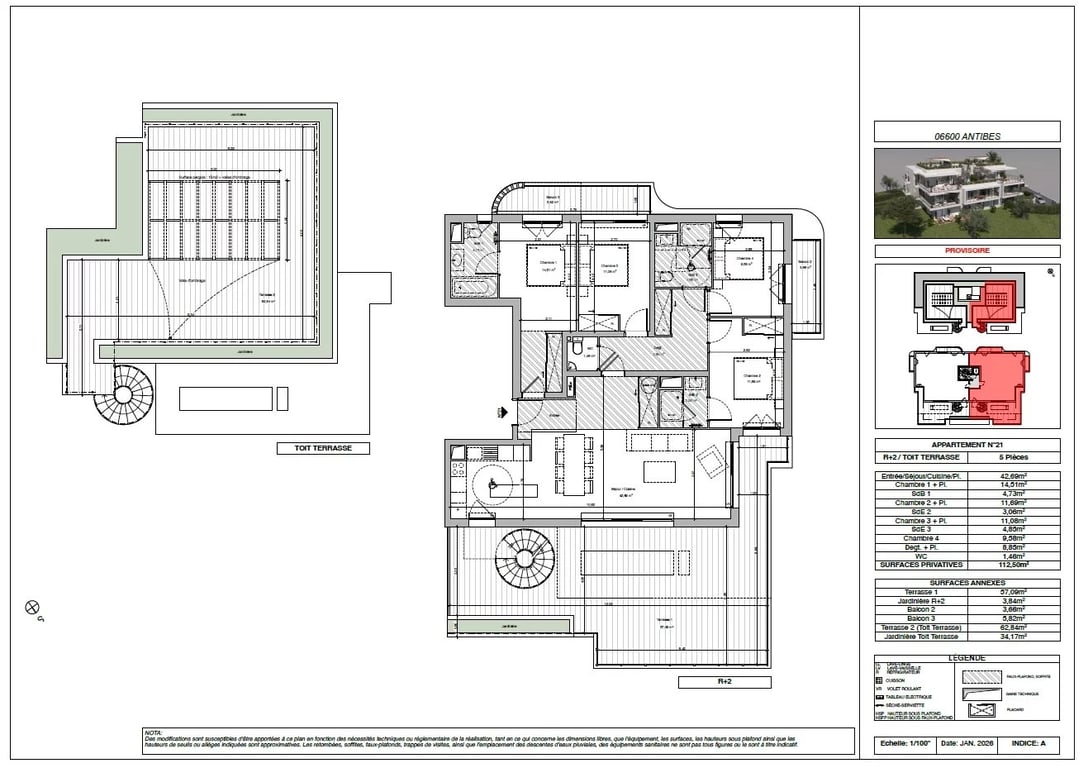 Antibes, Alpes-Maritimes 10 mins to Juan-les-Pins beaches, this new contemporary style residential development is nestled in a preserved, peaceful setting facing a pine forest, on the popular hills of Antibes. Stunning 4 bedroom 3 bathroom Penthouse measuring approximately 120m2 and offering a rare and privileged living experience. True havens of peace, it feature a spacious roof terrace, allowing residents to enjoy an intimate setting and unobstructed views of the pine forest and the hills. 2...