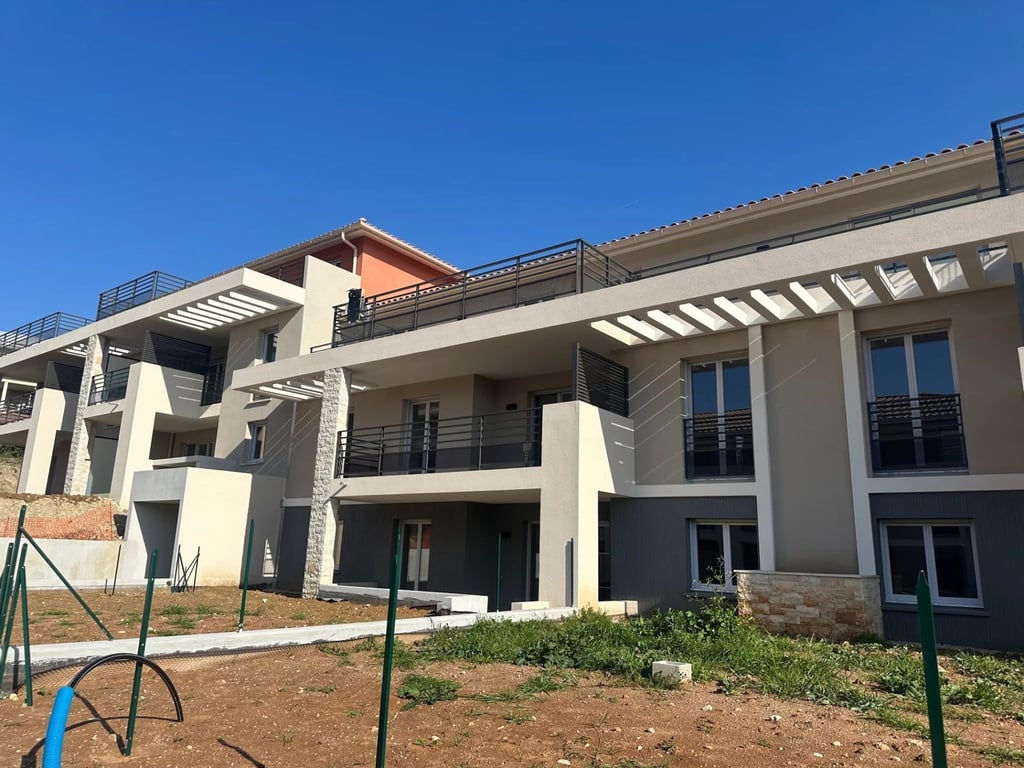 Golfe-Juan near Antibes, Alpes-Maritimes Beautiful 1 Bedroom 1 Bathroom ground floor apartment with vast private terrace and garden with lovely views over the countryside, the hills and the pool. Between Cannes and Nice, minutes to lovely sandy beaches of Juan les Pins, elegant new development in sought after residential area surrounded by villas and apartments. 1, 2 and 3 Bedroom apartments available with large private terraces or gardens. 1 Bedroom apartments available, some with sea views, o...
