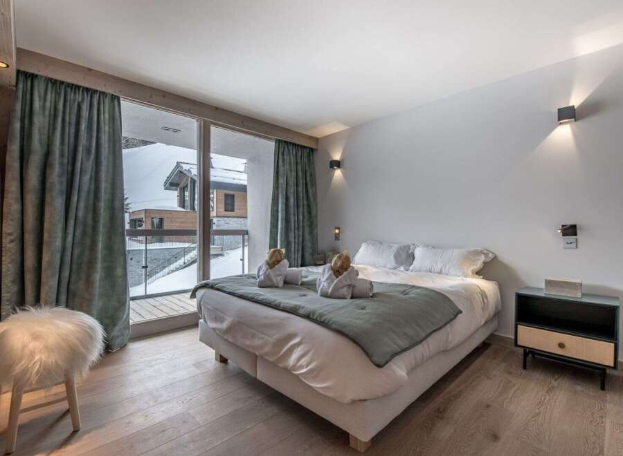 Magnificent ski-in ski-out apartment, ideally located in the heart of the resort. Its prime location provides immediate access to shops and the slopes of the world's largest ski area. The apartment is very bright and offers unobstructed views of the slopes and snow-capped peaks. Its refined décor, in a chic mountain style, creates a warm and elegant atmosphere, enhanced by high-end amenities. The south-east facing balcony is perfect for relaxing and sunbathing, facing an exceptional alpine panor...