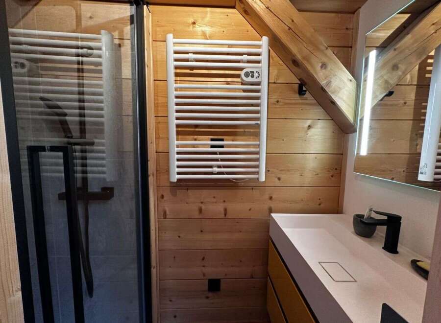 Discover this rare and unique duplex apartment, ideally located on the first floor of a small condominium, offering direct access to the slopes. Completely renovated with high-quality materials, this charming property includes: On the first level, an entrance, an open kitchen leading to a spacious living-dining room, a laundry room, a bathroom with shower and sauna, an independent WC, and two bedrooms. On the upper level, a shower room, an independent WC, and two additional bedrooms. Perfect for...