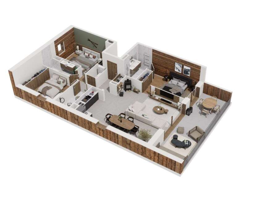 Just a few steps from the center of Les Houches and the Bellevue cable car, the La Cordée de Bellevarde residence enjoys a privileged location and access to all amenities. Come and discover this three-bedroom apartment with a living area of 100.80 m2, located on the first floor. It comprises an entrance hall, a pantry, a fitted kitchen opening onto the dining room and living room with access to a generous terrace, three double bedrooms, two shower rooms, and a separate toilet. This property enjo...