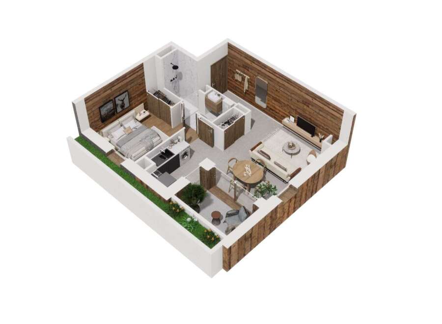 Just a few steps from the center of Les Houches and the Bellevue cable car, the La Cordée de Bellevarde residence enjoys a privileged location and access to all amenities. Come and discover this one-bedroom apartment with a living area of 39.70 m2, located on the ground floor. It comprises an entrance hall, a fitted kitchen opening onto the dining room and living room with access to a terrace, a double bedroom, and a bathroom with toilet. This property faces north. An interior designer is availa...