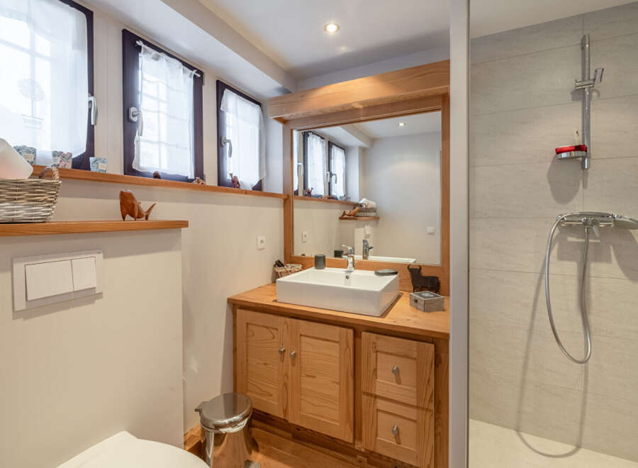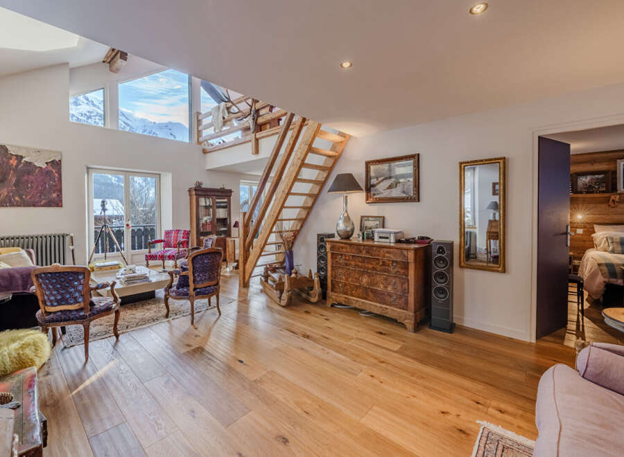 This beautifully renovated 245 sqm south-facing chalet just steps from the golf course and Flegere lifts offers four bedrooms and an exceptional sense of space, designed for refined mountain living. Bathed in natural light thanks to its ideal orientation, the property tastefully renovated, blends generous volumes with warm Alpine character in an intimate and peaceful setting.The entrance level hosts three elegant double bedrooms, two with en suite bathrooms and one with its own WC, creating a co...