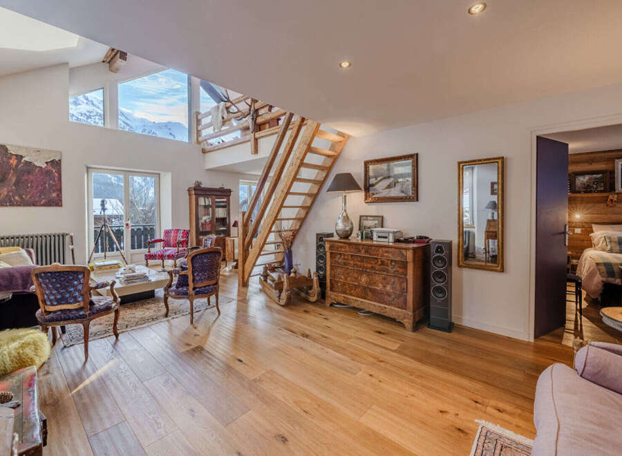Located in the heart of the village of Les Praz de Chamonix, just a stone's throw from the golf course and the La Flégère ski lifts, this 239 m2 country house?completely and tastefully renovated?offers an exceptional living environment, combining authentic charm with high-end amenities. It comprises 4 bedrooms, 3 of which are en suite, a spacious, light-filled living area opening onto a large balcony with breathtaking views of Mont Blanc, an open-plan fitted kitchen, and a magnificent mezzanine ...