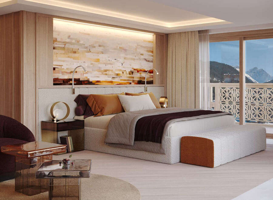 #Spaces, clarity, distance# In Courchevel Moriond, this chalet rises over six levels connected by a lift, forming a vertical sequence in which mountain life unfolds in successive tiers: night, gathering, relaxation, rejuvenation. The intermediate floors are devoted to the night area: four suites and a master suite, arranged like so many retreats, each with its own privacy and comfort considered in every detail. The master suite, positioned directly beneath the main living area, creates a direc...