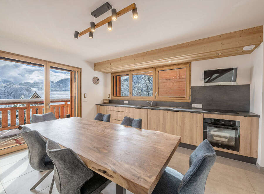 Discover this magnificent new chalet built in 2025, located in La Côte d'Arbroz, a charming mountain village just 10 minutes from Morzine and the Mont Chery slopes, which connect to the Portes du Soleil ski area. Situated in an authentic setting with preserved alpine charm, this chalet enjoys a peaceful and sunny location. Built in 2025, it features a heat pump system ensuring controlled energy costs. It comprises a fully equipped kitchen opening onto a bright living/dining room with a wood-burn...