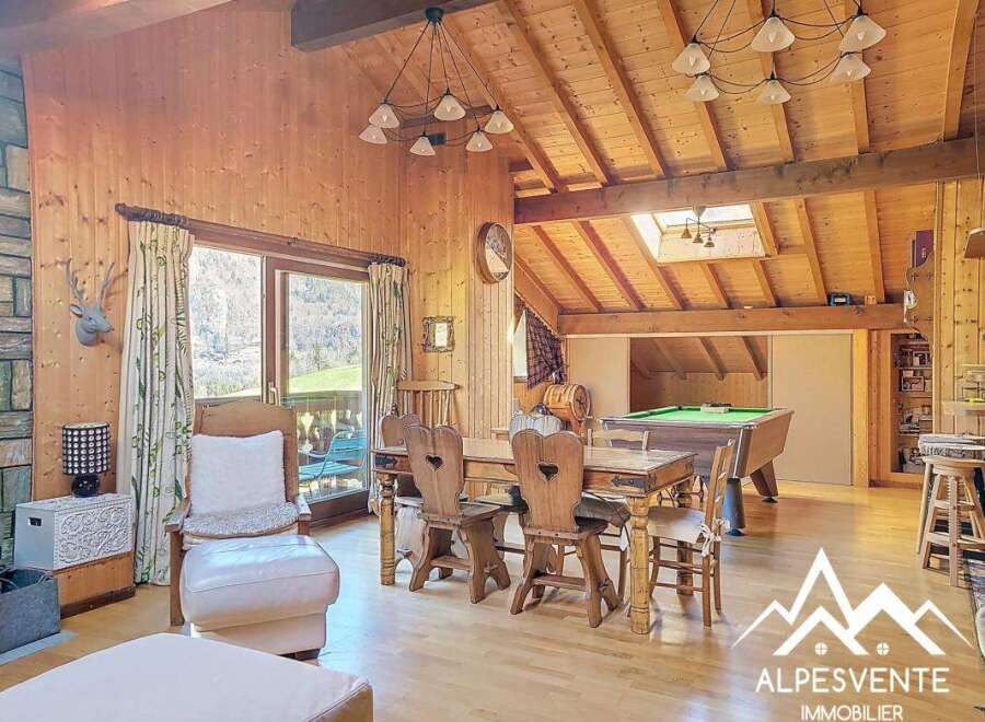 FOR SALE DETACHED CHALET WITH 3 APARTMENTS IN LA VERNAZ Authentic character chalet dating from 1835, offering spacious rooms and great potential, currently configured as three independent apartments spread over three levels. Ground floor: The first apartment comprises a fully equipped kitchen opening onto a welcoming living room with a wood-burning stove, two double bedrooms (one with space for an en-suite shower room), and a family bathroom. This level also includes a separate shoe room, a ...