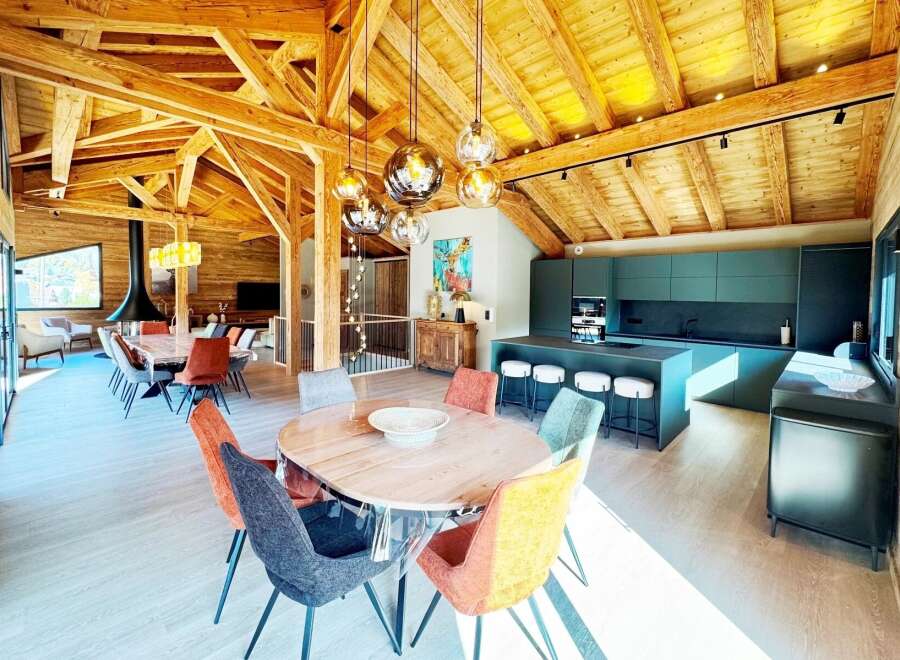 Chalet Athena is a beautiful new-build chalet of 345 m2 over three levels, designed to combine space, light, and contemporary alpine style. The property offers six en-suite bedrooms, a striking double-height living room with a modern fireplace and bespoke exposed larch timber frame, a fully equipped high-spec kitchen with island, a ski and bike room, and a double garage, all served by an elevator. There is also a dedicated area ready to be completed as a hammam, sauna or private wellness suite....