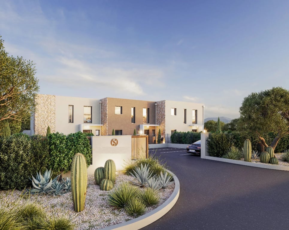 Cagnes-sur-Mer, Alpes-Maritimes Exclusive Private Domaine located in the sought-after residential area of Gros Buaux, in the heart of a lush forest and comprising of 3 newly built semi-detached and terraced villas with their own private pool. High specifications, two allocated external parking spaces, air-conditioning, choice of 80x80cm floor tiles. This spacious semi-detached villa includes 3 bedrooms and 2 bathroom and access to have more than 350m2 of private South facing garden. 10 mis to N...