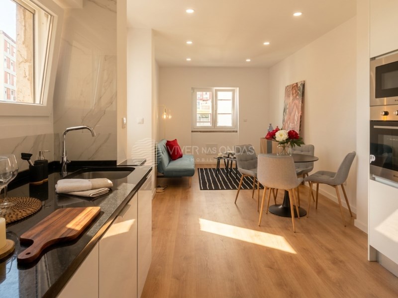 This completely refurbished, equipped and furnished T2 is distinguished by its generous areas, a storage room of 27 m2 and a strategic location in a family neighbourhood and in strong appreciation. A turnkey solution, ideal for those looking for quality, functionality and centrality. Offer of the Deed of Sale* The flat has an open space social area with 22 m2, where the modern kitchen, with white furniture and full ceramic coating in the work area, is fully equipped with oven, hob, extractor fa...