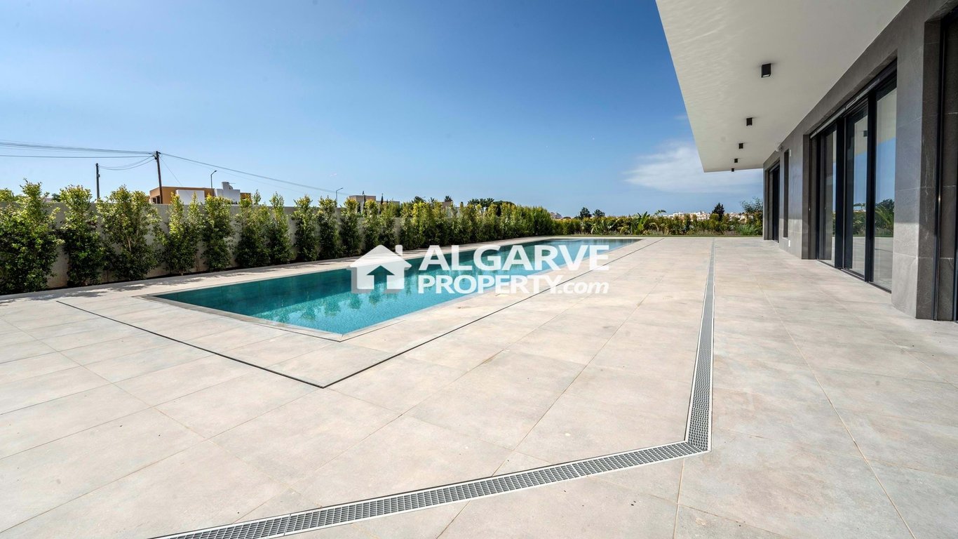 Experience the epitome of modern luxury with this stunning contemporary new villa in one of the Algarve's most coveted locations. With its three expansive floors, this home promises an exceptional blend of sophistication and convenience. The villa encompasses 500 m2 of meticulously designed living space, featuring 3+1 bedrooms and 5 elegant bathrooms. The grand living room, with its sweeping views of the beautifully landscaped garden and sparkling swimming pool, offers an ideal setting for rela...