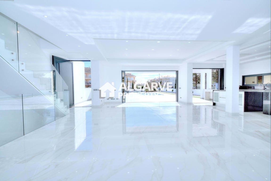 This brand new contemporary villa is in a prime location in Vilamoura, Algarve, just a 5-minute walk from the marina, beach, and amenities. Set on a 697 m2 plot, it offers 419 m2 of living space, designed with high-end finishes and a spacious, functional layout. The open-plan living and dining area is filled with natural light, seamlessly extending to the garden and heated saltwater pool. The modern kitchen, fully equipped with high-quality appliances, connects to an outdoor barbecue area, idea...