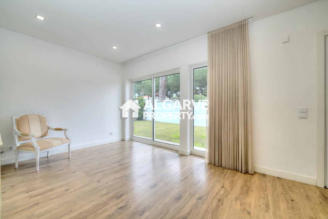 Semi-detached 2-bedroom house excellently located next to the Pinhal Golf Course and about 5 minutes from the beach and Vilamoura Marina. Set on a 375 m2 plot, with 172 m2 of built area, the property has been recently renovated. On the ground floor, it has a living room with fireplace, separate dining room, equipped kitchen and guest bathroom. On the first floor there are two en-suite bedrooms, both with access to a terrace. There is also the possibility of creating a third bedroom on the grou...