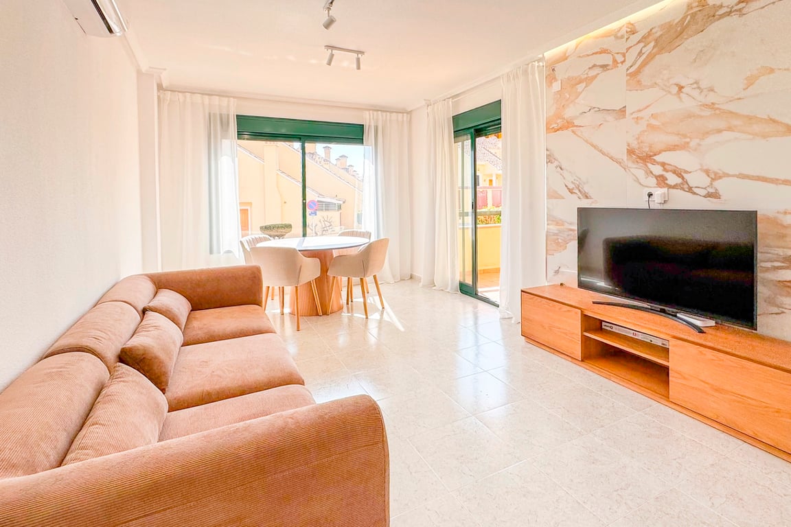 Discover this charming elevated ground floor apartment located in the exclusive residential area of Lomas de Campoamor , a privileged setting surrounded by golf courses and all the amenities needed for comfortable year-round living. The south-facing property, with its open views , enjoys excellent natural light throughout the day, creating a warm and inviting atmosphere. It offers 83 m2 of living space , distributed across two bedrooms and two bathrooms , one of which features a modern walk-in s...