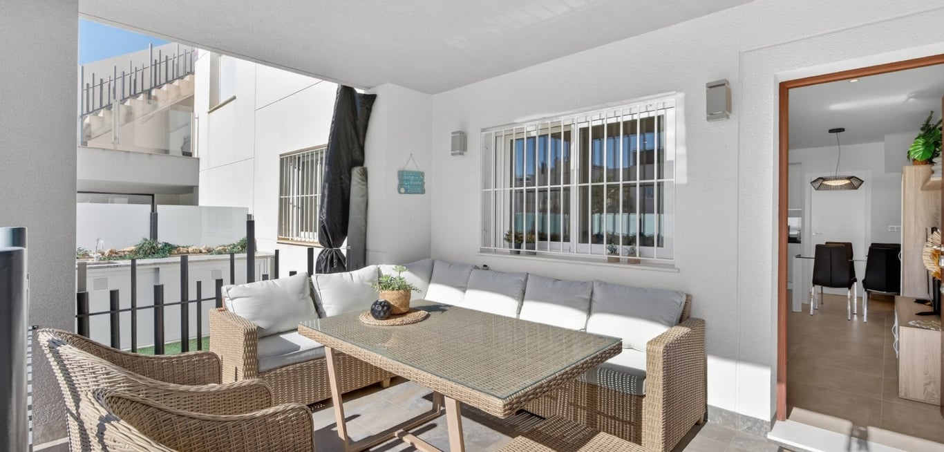 Immaculate Ground Floor apartment with Private Garden and Parking The Property:Experience the perfect blend of indoor and outdoor living in this stunning 3-bedroom, 2-bathroom ground floor apartment located in the prestigious Sol Park development, Aguas Nuevas. This home is in great condition and is being sold fully furnished, making it a completely turn-key opportunity for permanent living or a premium holiday retreat.The interior is bright and spacious, but the true highlight is the outdoor...